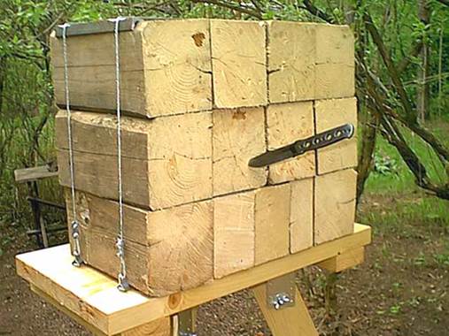 Мишень можно сделать классическую, из брусков квадратного сечения деревянной балки, которые стянуты вместе в общем квадрате. На сборах у нас используются именно такие мишени: