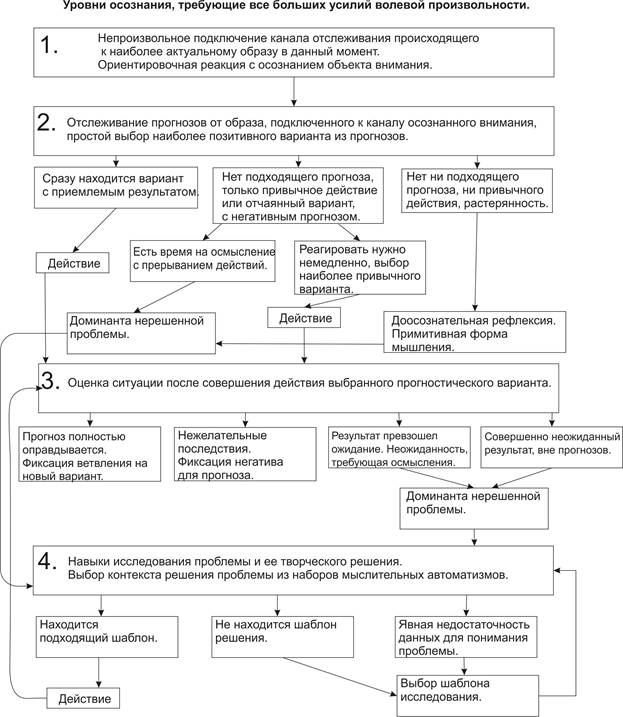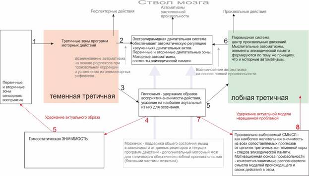 Это сильно усугубляется тем. что такие автоматизмы формируют свой эмоциональный контекст на самом низком уровне гомеостатической значимости. Субъект начинает формировать специфический опыт (мыслительные и моторные автоматизмы в контекстах субъективных моделей понимания) в этих контекстах.