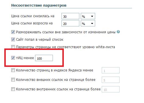 В правилах снятия также нужно указать необходимый порог тИЦ. В случае его достижения ссылка будет автоматически снята и заменена на другую – соответствующую указанным параметрам. Сделать это можно в Стратегиях – Правила снятия.