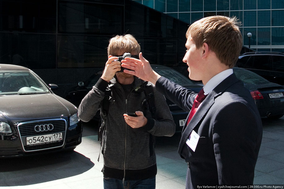 Мы продолжаем борьбу за свободу фотографии с России. Как известно, снимать можно почти все и везде, но это по закону. На деле же, фотограф вынужден отстаивать свои права в неравной борьбе с вахтерами, охранниками, милицией и другими "начальниками", которые сделали из свободной страны большой "стратегический секретный объект". Вчерашний наш поход в Москва-Сити закончился в отделении милиции, где мы написали заявление с просьбой возбудить уголовное дело в отношении гражданина Таджикистана Каюмова, которого турецкая компания "ENKA" поставила начальником службы безопасности. Но, обо всем по порядку…