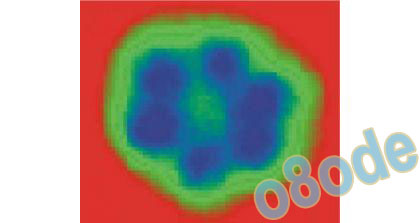 Рис. слева - Изображение гексамера воды, полученное с помощью сканирующего туннельного микроскопа. Размер гексамера в поперечнике - около 1 нм. Фото London Centre for Nanotechnology