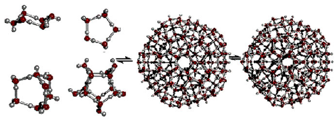 Изучить строение этих образующихся полимеров воды оказалось довольно сложно, поскольку вода – смесь различных полимеров, которые находятся в равновесии между собой. Сталкиваясь друг с другом, полимеры переходят один в другой, разлагаются и вновь образуются.