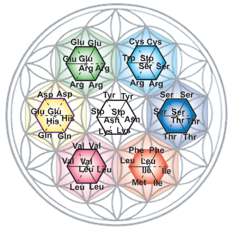 генетическом коде)., наложенного на Древний Цветок Жизни (Эзотерика), который