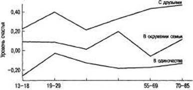 Центральная часть настоящей книги посвящена существенным, на мой взгляд, источникам счастья — социальным взаимоотношениям, работе и досугу. Сегодня нам известно, что такие виды отношений, как романтическая любовь, брак и дружба, — главные причины положительных эмоций и счастья, а также и прочих аспектов благополучия, например психического и физического здоровья. Эту роль они играют потому, что дают человеку социальную поддержку, проявляющуюся в форме практической помощи, эмоционального подкрепления и совместного проведения времени за приятными занятиями. Между счастьем и общительностью существует тесная взаимосвязь (глава 6).