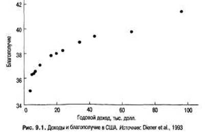 Экспериментальные исследования также показывают, что средние показатели счастья в богатых и бедных странах отличаются друг от друга весьма существенно. Вероятно, в первых населению предоставляются лучшие условия образования, здравоохранения, досуга, безопасности и др. Однако до сих пор ученые не смогли понять, почему же огромные исторические подвижки в среднем уровне дохода не вызвали повышения степени удовлетворенности или счастья. Вероятно, данный факт обусловлен ростом притязаний: если раньше люди мечтали о собственном велосипеде, то сейчас им уже нужно два автомобиля. Различия в уровне счастья наблюдаются также между разными по доходам слоями населения в рамках отдельных стран, и особенно заметны таковые там, где сильно социальное неравенство. Вызвано это не только тем, что богатые люди тратят больше денег, — сама работа удовлетворяет их больше, досуг у них интереснее и разнообразнее, а социальные взаимоотношения прочнее.
