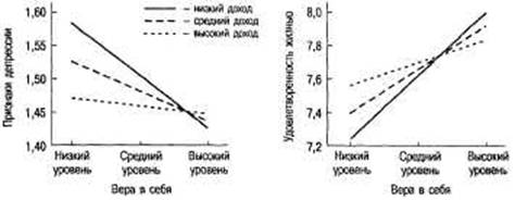 В главе 2 говорилось, что отсутствие депрессии и других отрицательных эмоций является составной частью субъективного благополучия. Как установлено во многих исследованиях, существует сильная отрицательная взаимосвязь, в частности, между депрессией и показателями счастья и удовлетворенности (УеепЬоуеп, 1994). Хиди и Веринг (Неайеу & Уеапп§, 1992), проводившие свое исследование в Австралии, обнаружили: удовлетворенность жизнью и положительные эмоции коррелируют с депрессией и тревогой следующим образом: