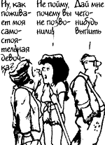 Женщина, 28 лет. В прошлом году я провела много времени, слоняясь по барам для одиночек в поисках развлечений. Через некоторое время все "истории" и лица слились в одно - каждый парень заявлял, что он врач, адвокат или вице-президент корпорации, и все это вранье стало невыносимым. Даже секс был не очень-то хорош... и безусловно не стоил тех мук, которые приходилось вынести, пытаясь найти партнера. (Из картотеки авторов)