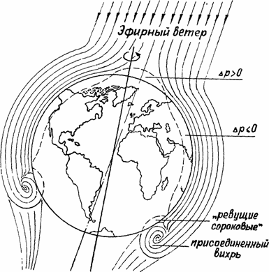 Рис. 22.3. Обдув Земли эфирным ветром: