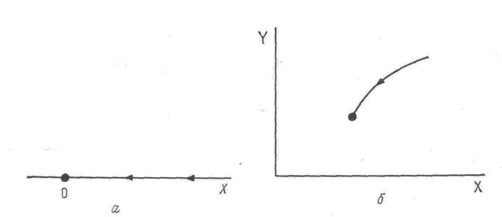 Например, в случае уравнения (1) фазовое пространство сводится к линии, на которой и находится фазовая траектория (рис. 1, а). Менее тривиальным примером является химическая реакция, описываемая следующей кинетической схемой: