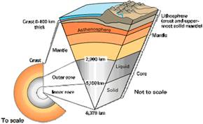 Возбуждаются четыре основных типа волн: продольные, имеющие максимальную скорость распространения и приходящих к наблюдателе в первую очередь, затем поперечные колебания и наиболее медленные - поверхностные волны с колебаниями по эллипсу в вертикальной плоскости (Рэлея) и в горизонтальной плоскости (Лява) в направлении распространения. Разность времени первых вступлений волн используется для определения расстояния до эпицентра, положения гипоцентра и выяснения внутреннего строения Земли и местонахождения источника землетрясений. С помощью записи сейсмических волн, прошедших через ядро Земли удалось определить его строение. Внешнее ядро оказалось в жидком состоянии. В жидкости распространяются только продольные волны. Твердое внутреннее ядро обнаружено с помощью поперечных волн, которые возбуждаются продольными волнами, попавшими на границу раздела жидкость-твердость. По картине записываемых колебаний и типов волн, по временам вступлений сейсмических волн сейсмографами на поверхности Земли удалось определить размеры составных частей ядра, их плотности.