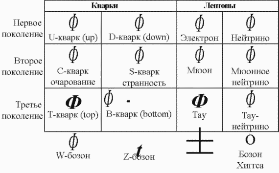Еще древнегреческие философы предполагали, что все во Вселенной может состоять из крошечных частиц, называемых атомами. Сегодня же, используя мощные ускорители заряженных частиц, мы можем расщепить атом на электроны и ядро, которые, в свою очередь, могут быть расщеплены на еще более мелкие субатомные частицы. Но вместо открытия стройной и простой системы ученые стали свидетелями угнетающего факта: из ускорителей вылетают сотни субатомных частиц со странными названиями, такими, как нейтрино, кварки, мезоны, лептоны, адроны, глюоны, бозоны и прочие. Трудно поверить, что природа на уровне выстраивания фундамента смогла создать целые джунгли странных атомных частиц, среди которых можно просто заблудиться.