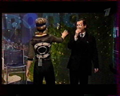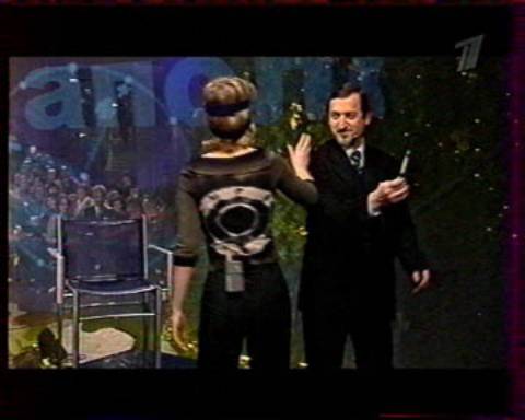 Это очень простой фокус. Как вы увидите по фотографиям и видеофрагменту, вся «фишка» заключена в том, что не девочка с повязкой на лице должна «увидеть» авторучку, а это Бронников должен поднести авторучку к тому пространству, которое девочка видит через щель. Девочка просто вытягивает руку вперёд, и к этой вытянутой руке Бронников подносит авторучку. Проделайте простой опыт. Закройте веки правого глаза, а левый глаз оставьте открытым. Прижмите ладонь к открытому левому глазу так, чтобы между ладонью и переносицей образовалась небольшая щель. Теперь вытяните вперед правую руку, чтобы кисть руки оказалась видна в эту щель. После этого откройте оба глаза и оцените, где оказалась ваша рука – она оказалась отклоненной в сторону примерно на 30-40°. Вот именно так ВСЁ ВРЕМЯ держит руку девочка. Либо правую, либо левую. Обратите внимание, вот Бронников резко перемещает авторучку в сторону. Если вначале авторучка была с левой стороны от лица девочки, то теперь она на такой же угол отклонения смещается в правую сторону от лица. Чтобы фокус прошёл удачно, «ведущий» и «ведомый» должны придерживаться двух правил. Во-первых, авторучку следует держать чуть в стороне, а не напротив лица человека с повязкой, - так, чтобы эта ручка была видна ему через щель, а именно – на продолжении вытянутой руки, примерно на расстоянии 15-20 см от кисти. Второе правило – в тот момент, когда человек в повязке не видит искомого предмета через щель между повязкой и переносицей и не знает, в каком месте пространства предмет находится, необходимо подать условный сигнал. Заметив этот сигнал, человек с авторучкой подносит его к пальцам вытянутой руки. Сигнал называется «тук-тук». Он похож на те покачивания ладони, которые мы делаем, когда прощаемся с кем-то на расстоянии (или когда передаем приветы перед видеокамерой). Наташа делает два коротких качания ладонью, будто стучит ребром ладони: тук-тук. После этого Бронников понимает, что увел авторучку из поля зрения девочки и тут же подносит её к самым пальцам девочки. Вот и весь секрет. |