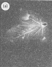Напомним, что в основе его лежит так называемая газоразрядная визуализация, открытая около сорока лет назад советскими учеными С. Д. и В. X. Кирлиан. Метод позволяет исследовать любые, в том числе и живые объекты, которые начинают «искрить», если их расположить между электродами генератора высокочастотных высоковольтных электрических полей. При этом исследуемые объекты должны размещаться так, чтобы между ними и одним из электродов имелся некоторый зазор. Если на одном электроде расположить лист растения, а на другом фотопленку, то искры как бы «вычерчивают» контуры листа и частично его внутреннюю структуру.