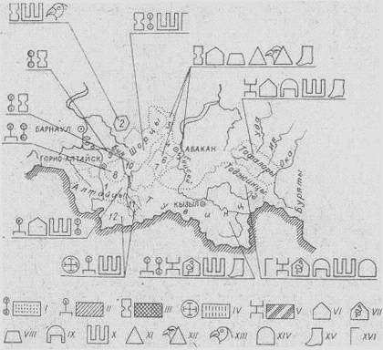 Алтайцы. Религиозные верования алтайцев в XVII - первой половине XIX в. специально никем не изучались. Лишь во второй половине XIX в. появляются работы, в которых описываются обряды и атрибуты алтайских шаманов. Так, интересные материалы о шаманизме алтайцев имеются в статьях и книгах В. И. Вербицкого, публиковавшихся с 1859 г. до конца XIX в. Им подробно зафиксированы моления Улъгену - главному божеству-небожителю и Эрлику - главе злых духов нижнего мира [Вербицкий, 1886, с. 1-12]; дана характеристика алтайского анимизма и пр. [Вербицкий, 1893, с. 43-77]. В 1860-70-х гг. по Алтаю путешествовал В. В. Радлов. Впоследствии он опубликовал книгу, одна глава которой посвящена шаманизму алтайцев [Radloff, 1893]. Попутно нужно отметить, что с его именем связана большая часть того, что было сделано в конце XIX - начале XX в. в освещении религии тюркоязычных народов [Малов, 1924, с. I].