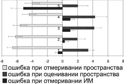 тенденцию к более точному оцениванию пространства у лиц второй группы и