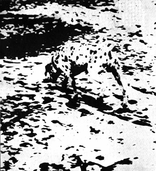 Даже, казалось бы, в бессмысленном нагромождении пятен мы отчетливо улавливаем далматинца. Несмотря на то, что все полутона утрачены, всё же нетрудно отличить пятна на теле собаки от сходных пятен фона. Это возможно потому, что в мозгу содержится информация не только о форме собачьего тела, но и о многих тысяч других вещей.
