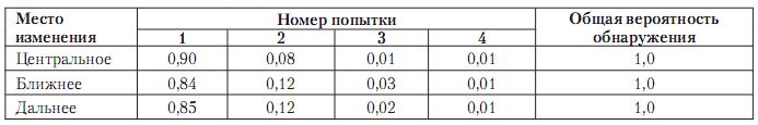 Таблица 3. Вероятности своевременного обнаружения изменения в зависимости от номера попытки.