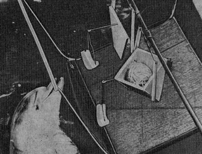 Изучение способности черноморских афалин экстраполировать направление движения исчезающих за преградой раздражителей при различных условиях их предъявления проводилось в отсеке размерами 8X10,5 м2, куда была помещена звуко- и светонепроницаемая ширма длиной 6 м, высотой 2 м, на одну треть погруженная в воду, с окном шириной 0,8 м в середине (Крушинский и др., 1982). Окно и пространство от ширмы до дна отсека были забраны сетью. Слева и справа от ширмы имелись проходы шириной около 2 м, позволявшие дельфину оплывать ширму с любой стороны. При (проведении эксперимента дельфину, находившемуся на стартовой позиции напротив окна ширмы, предъявлялся в окне натуральный (рыба) или другой привлекавший его раздражитель (мяч). После подхода животного к окну по сигналу (всплеску о воду раздражителя) и при попытке охватить приманку последняя на держателе отодвигалась вдоль ширмы и скрывалась из поля зрения животного. Таким образом, животному предлагалось решить задачу отыскания раздражителя: после получения информации о первоначальном направлении движения раздражителя экстраполировать его последующий путь за ширмой и обойти ее с соответствующей стороны. В следующем опыте приманку продвигали в противоположном направлении, а в дальнейшем направление ее перемещения меняли без строгого чередования.