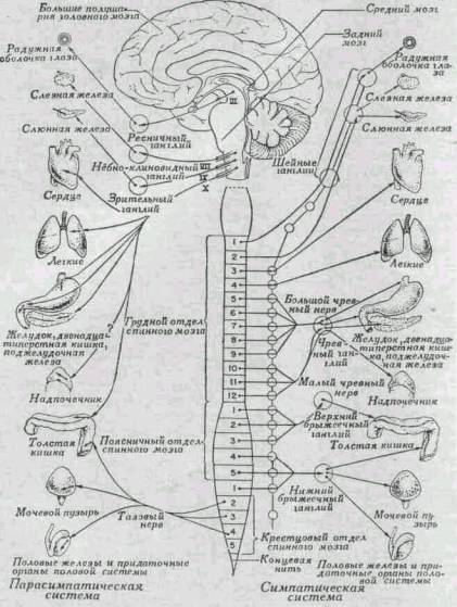 Рис. 273. Схема вегетативной нервной системы.