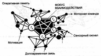 Фокус состоит из групп нервных клеток, отличающихся различными частотными параметрами и входяшими в состав нейросетей, где нейронные ансамбли объединены гибкими связями на основе идентичности частотных характеристик. Группы внутри фокуса соединены жесткими связями, основанными на структурных изменениях в синапсах. Благодаря такой структуре фокус получает информацию, циркулирующую в различных нейронных сетях, включая: сенсорную информацию, сведения, хранящиеся в оперативной и долговременной памяти, а также сигналы из центров мотивации. На основе сравнения и синтеза различной информации достигается решение, которое реализуется в моторных командах