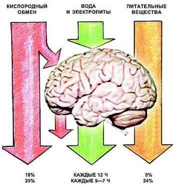 водно-солевого баланса. Мозг получает кислород, воду с растворами