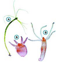 так же быстро, как простейшие одноклеточные. У животных, прикрепленных к конкретному месту, - актиний, асцидий, малоподвижных моллюсков с крупными раковинами, коралловых полипов - несложные задачи: фильтрация воды и захват проплывающей мимо пищи. Поэтому нервная система таких малоподвижных организмов по сравнению с нервной системой активных животных устроена очень просто. Она в основном представляет собой небольшое окологлоточное нервное кольцо с совокупностью примитивных рефлексов. Тем не менее даже эти простые реакции протекают на несколько порядков быстрее, чем у растений такого же размера. Свободноживущим кишечнополостным требуется более обширная нервная сеть. У них нервная система распределена почти равномерно по всему телу или по большей его части (исключение составляют скопления нервных клеток у подошвы и в области окологлоточного кольца), что обеспечивает быструю согласованную реакцию всего организма на раздражители. Равномерно распределенную нервную систему обычно называют диффузной. На различные воздействия организм таких живых существ откликается быстро, но неспецифически, то есть однотипно. Например, пресноводная гидра при любых информационных сигналах - если качнуть лист, на котором она сидит, прикоснуться к ней щетинкой или вызвать движение воды - реагирует одинаковым образом - сжимается. ПОЯВЛЕНИЕ ОРГАНОВ ЧУВСТВ Следующим этапом в эволюции нервной системы стало
