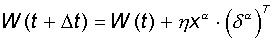 Вектор весов модифицируется по следующей формуле: . Здесь - темп