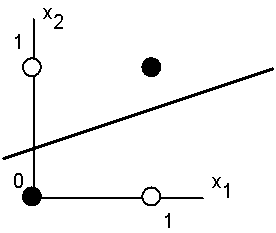 Рис. 4.2. Белые точки не могут быть отделены одной прямой от