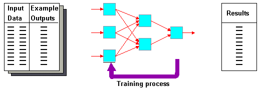 Суть обучения заключается в решении задачи подбора параметров сети (весов связей) для минимизации функции ошибки. Причем из всех обучающих примеров часть используется только для контроля.