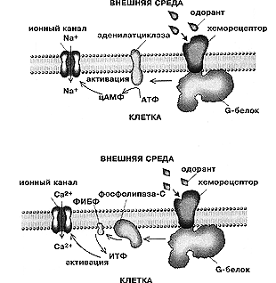 аденилатциклазный и инозитольный — в обонятельных рецепторах.
