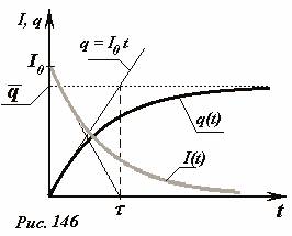 Схематически зависимости заряда конденсатора и силы тока в цепи от времени показаны на рис. 146. Для оценки времени зарядки конденсатора можно принять, что заряд возрастает до максимального значения с постоянной скоростью, равной силе тока в начальный момент времени. В этом случае