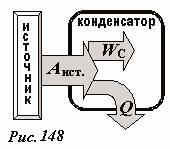 . (7)Таким образом, энергетический баланс полностью сходится и для всего процесса целиком: работа, совершенная источником равна сумме энергии конденсатора и количества выделившейся теплоты A = WC + Q. Схематически преобразование энергии в этом процессе показано на рис. 148.