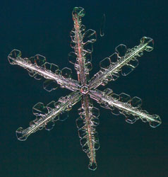 Подборка фотографий снежинок, выполненных физиком Кеннетом Либрехтом (Kenneth Libbrecht) из Калифорнийского технологического института. Автором был создан сайт , на котором выложены наиболее успешные снимки. Помимо безусловной эстетической привлекательности изучение внешнего вида снежинок обладает и научной ценностью - оно помогает прояснить процессы конденсации воды и образования кристаллов льда.