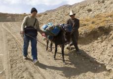 Мы собрались и начали спуск. Но и тут наша удача побудила живших внизу выйти к нам навстречу на лошади и ишаке, так что, после стыковки, расспросов и отфотывания, ишака нагрузили нашими рюкзаками и я взял его повод в свои руки.