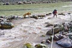 Так что при переходе через бурлящую по порогам Кызыл-Су пришлось переправлять и