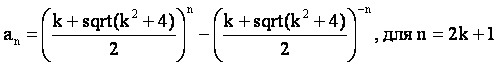 Члены главных последовательностей с рекуррентным свойством a(n)=ka(n–1)–a(n–2) вычисляются с помощью золотых констант по следующим формулам [2]: