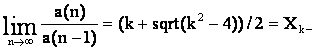 ТЕОРЕМА 2: Константы целочисленных последовательностей, имеющих рекуррентные формулы вида: a(n)=±ka(n–1)–a(n–2), определяемые как предел отношения членов последовательности: