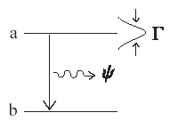 ψE (r,t) для фотона спонтанно выданного атомом, когда он релаксирует. Рассмотрим двухуровневый атом, расположенный в r0 , первоначально возбужденный на уровне a и релаксирующий со скоростью Г на уровень b, как показано на рисунке 2. Состояние излучаемого поля |ψ) является наложением однофотонного состояния |lk), суммированного по всем модам k, записывается как|