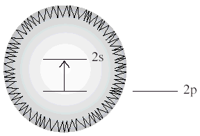 [19] атом в возбужденном состоянии переходит в основное состояние и спонтанно излучает фотон (смотри Рис.2). Эта "спонтанная" эмиссия в некотором смысле является стимулированной эмиссией, где стимулирующее поле являляется колебаниями вакуума. Если бы атом оставался в возбужденном состоянии и поле было бы классическим, и атом никогда не развивал бы дипольный момент и никогда не излучал бы. В этом смысле, полуклассическая теория не принимает во вниманте спонтанную эмиссию. Тем не менее, когда вакуумные колебания учитываются, концептуально, мы можем думать о том, что атом может стимулироваться, чтобы выдавать излучение колебательного поля, и отдача излученного света будет возвращать атом в основное состояние, вызывая разрушение возбужденного состояния. Таким образом, мы понимаем спонтанную эмиссию как следствие вакуумных колебаний.2. Лэмбовский сдвиг