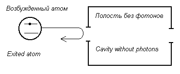 Вакуумное рассеяние - возбужденный атом подходящий к пустой полости может отражаться или достаточно замедлить свою скорость. Вакуумное поле полости служит в качестве эффективного потенциального барьера для центра масс волновой функции атома.Фиг. 4.