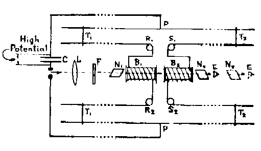 Всякий, кто увидел бы использовавшуюся экспериментальную установку, должен был усомниться, а действительно ли скорости электронов постоянны и определены в пределах 1/100 вольта, так как действовавшее здесь поле не вполне однородно. Длина промежутка, на котором электроны и альфа-частицы двигались вместе, была не больше 5 миллиметров,