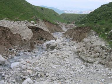 (в виде эрозионного вреза) в котором зародился сель в долине р. Такыр-Тер.