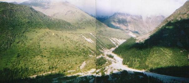 Методическим руководством по изучению селей, выпушенном КАЗНИГМИ в 1976 г., предусматривается определение физикомеханических характеристик (в том числе и гранулометрических) грунтов непосредственно конкретных очагов возможного селезарождения (это – селевые врезы, рытвины, очаги рассредоточенного селеобразования и пр.; по классификации КАЗНИГМИ). Это очень трудоемкий и дорогостоящий процесс, поэтому он применим в единичных случаях. Слабым местом их исследований (как в целом в материалах всех других иссдователей, изучающих сели и оползни), является отсутствие необходимой корректной генетической типизации субстратов селезарождения. Во всех случаях за морены принимались и псевдоморены из числа деляпсивных гравитационных отложений. Это имеет принципиально важное значение. Как показали наши исследования (см. вышеизложенное в Приложении), истинные морены значительно (в 1,5 -: 2 раза) уступают псевдомренам (из числа делясивных гравитационных образований, наиболее часто встречающихся) в содержании глинистых фракций мелкоземистого заполнителя. Поэтому на субстратах такого рода псевдоморен зарождаются грязекаменные сели, отличающиеся высокой плотностью и большой (зачастую более 20 км протяженностью) транзитной зоной грязекаменных селевых потоков (они же наиболее мощные и разрушительные); именно по таким субстратам зародились вышеуказанные грязекаменные сели в долинах рек м. Алмаатинка, Чемолган, Ангы-сай, Чирканак, Такыр-Тер и др. Как показали наши исследования [10, 11, 12], подобными по содержанию глинистых фракций являются и полигенетические (именно таковыми они являются) склоновые отложения, развитые практически повсеместно в среднегорных и высокогорных районах Тянь-Шаня. Весьма высокое содержание глинистых фракций в ранне – и среднеплейстоценовых аллювиально-пролювиальных отложениях подгорных конусов выноса. В таких случаях (при значительном содержании глинистых фракций в мелкоземистом заполнителе отложений) проявляются сдвиговой и эрозионно-сдвиговой процессы с заождением грязекаменных селей высокой и средней плотности. На субстратах же морен зарождаются грязекаменные сели невысокой плотности, и они имеют незначительные транзитные зоны. Ярким примером грязекаменных селей, формирующихся на субстрате голоценовой морены, является долина р. Ак-Сай (бас. р. Ала-Арча) (фото № 30)