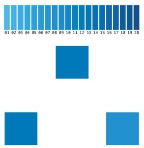 На экране им показывали три квадрата, закрашенные произвольно компьютером в один из 20 оттенков синего. Надо было как можно быстрее указать — соответствует ли верхний квадрат по оттенку одному из квадратов внизу, и какому именно. При этом в части испытаний три квадрата имели аналогичный оттенок, в части — один из трёх квадратов отличался в большей или меньшей степени.