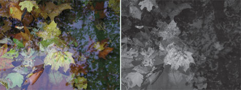 Как беден стал бы мир, лишившись красок! Цвета не только позволяют нам видеть окружающее более точно, но и порождают качественно новые оттенки восприятия. Например, на цветной фотографии отчетливо видны осенние листья в спокойной глади фонтана, отражения в воде деревьев и синего послеполуденного неба над ними. А на черно-белом снимке листья менее заметны, голубые небеса отсутствуют вовсе, отражения лишь намечены, сама вода едва угадывается, кроме того, пространство картины совершенно лишено глубины.
