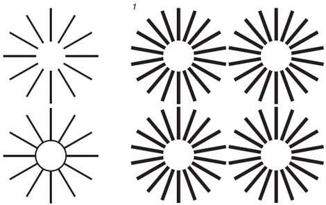 обманов. Добавление окружности (слева внизу) разрушает иллюзорное видение