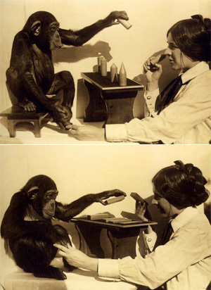 Особое место среди них занимают исследования Надежды Николаевны Ладыгиной-Котс, которым много внимания в своей книге уделяет и Ж. И. Резникова. В 1914–1916 гг. Ладыгина-Котс подробно, с использованием экспериментальных методов, изучила поведение молодого шимпанзе Иони, который жил у них в семье, а позднее, используя те же подходы, изучала поведение своего маленького сына — Руди. Ее монография «Дитя шимпанзе и дитя человека в их инстинктах, эмоциях, играх, привычках и выразительных движениях», изданная в Москве Дарвиновским музеем в 1935 году, недавно была опубликована на английском языке как классическая работа в области зоопсихологии (Ladygina-Kohts, 2002).