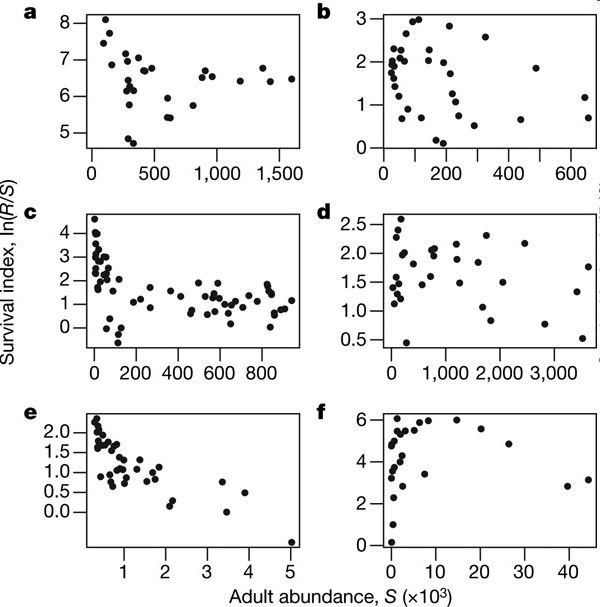 В работе подчеркивается, что при сокращении численности популяций вовсе не следует ожидать, что выживаемость молоди обязательно повысится и что это автоматически обеспечит сохранение популяции. Из-за огромной вариабельности выживания этих благоприятных для популяции изменений может и не произойти.