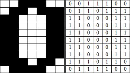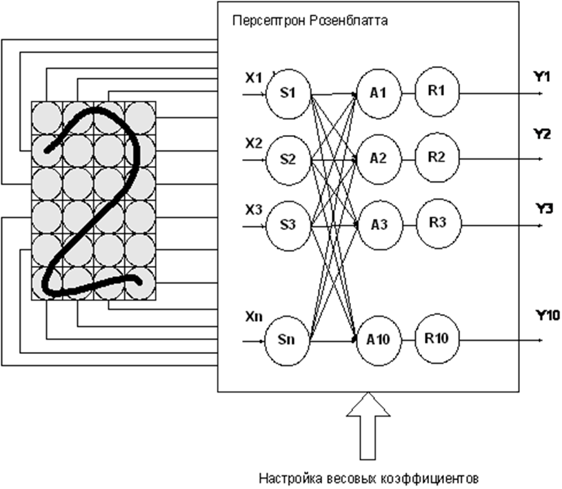 РИСУНОК схема распознавания цифры, представленной полем активных входов (1)