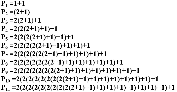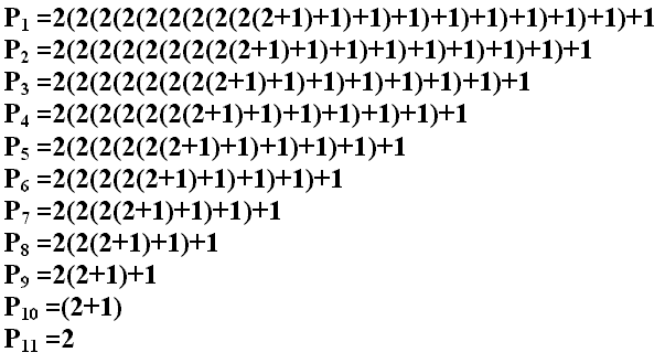 Pp =2(2(2(2(2(2(2(2(2(2+1)+1)+1)+1)+1)+1)+1)+1)+1)+1 (1)
